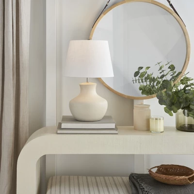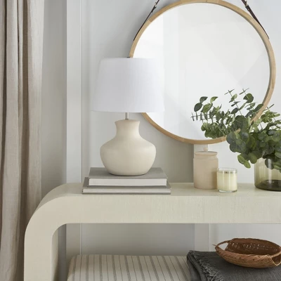 Brighten up your bedside or accent table with this natural finished ceramic table lamp. Its unique gourd shaped base is crafted in a neutral tone. Bringing simplistic beauty to a variety of décor styles – from boho to contemporary and farmhouse.