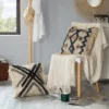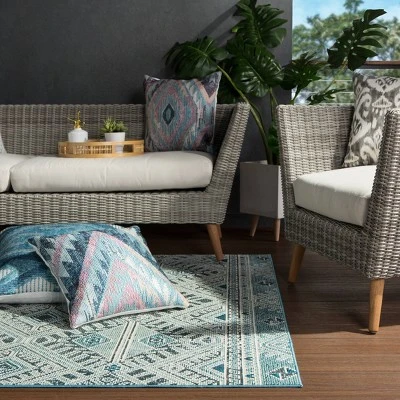 Contemporary pattern play and vibrant colors lend Nikki Chu’s Groove pillow collection a whimsical, boho vibe. The Petra pillow boasts a multicolor geometric motif and soft, durable feel. The hues of blue, purple, orange, and pink create a stunning throw pillow. Perfect for indoor and outdoor spaces, this accent is made of easy-clean polyester and features a subtle, luxe sheen.