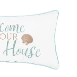 This hand screen printed pillow features machine embroidered accents. Gold foil printed botanicals accent the pumpkin as well as the leaves and berries. Festive and glammed, this pillow is a beautiful adornment for any transitional décor. A contrasting welt in the same teal frames this pillow. A back in a solid matching cotton features a hidden zipper closure.
