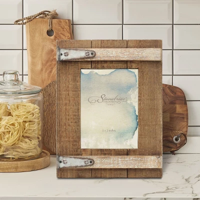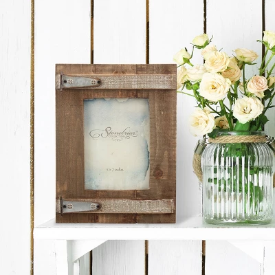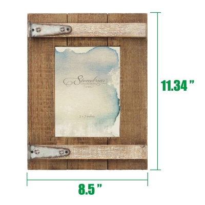 Remember those special moments and enhance your home dĂ©cor with Stonebriar’s 5″ x 7″ wooden barn door single photo frame. This frame measures 11.3″ height by 8.5″ width and is easily loaded with movable clips on the back easel. It can fit any 5” x 7” photo, piece of artwork, or document. Frame comes with a back easel for vertical or horizontal display on any shelf, tabletop, or desktop. Wooden frame is made of distressed natural wood and oxidized metal hinges for a rustic barn door design, and your pictures will be kept safe and looking great by a protective glass plate insert.