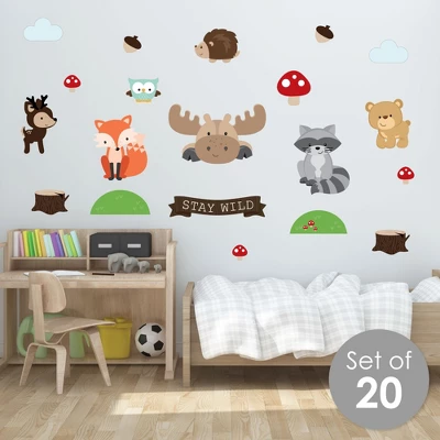 Big Dot of Happiness Woodland Creatures Wall Decals includes 1 sheet of 20 assorted vinyl wall art stickers that you can arrange to add a special touch to your home decor. Wall Decal sheet measures 50” wide by 16.5” tall. Pieces range in size from 15 x 9.5” to 2.75 x 2.75”. Effortless Decor: The Animals wall stickers are an easy solution for bringing in some added charm to your space within minutes! You can use the wall decals for nursery and kids’ rooms, impressive photo backdrops, or as easy decor at your Baby Shower or Birthday Party. Easy to Use: Woodland Creatures vinyl decals are easy-to-peel and repositionable. Wall art stickers will adhere to various surfaces including painted walls, plastic, wood, glass, and metal. To use, make sure your surface is clean and dry. Slowly peel the sticker from the paper to avoid tearing and smooth over with your hand. They are also easy to remove, leaving no residue. High-Quality Supply: Woodland Creatures wall stickers come with a quality matte finish and vibrant colors. They are printed on water-resistant professional quality material and will arrive on one full sheet rolled. Made In The USA: Animals Wall Decals are designed and manufactured at our Wisconsin facility using materials that are Made in the USA.