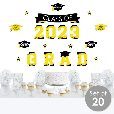 Big Dot of Happiness Yellow Grad – Best is Yet to Come Wall Decals includes 1 sheet of 20 assorted vinyl wall art stickers that you can arrange to add a special touch to your home decor. Wall Decal sheet measures 50″ wide by 16.5″ tall. Pieces range in size from 26.5 x 5.75″ to 2.5 x 2.5″. Effortless Decor: The Yellow Grad wall stickers are an easy solution for bringing in some added charm to your space within minutes! You can use the wall decals for party or celebration rooms, impressive photo backdrops, or as easy decor at your Graduation Party. Easy to Use: Yellow Grad – Best is Yet to Come vinyl decals are easy-to-peel and repositionable. Wall art stickers will adhere to various surfaces including painted walls, plastic, wood, glass, and metal. To use, make sure your surface is clean and dry. Slowly peel the sticker from the paper to avoid tearing and smooth over with your hand. They are also easy to remove, leaving no residue. High-Quality Supply: Yellow Grad – Best is Yet to Come wall stickers come with a quality matte finish and vibrant colors. They are printed on water-resistant professional quality material and will arrive on one full sheet rolled. Made In The USA: Yellow Grad Wall Decals are designed and manufactured at our Wisconsin facility using materials that are Made in the USA.