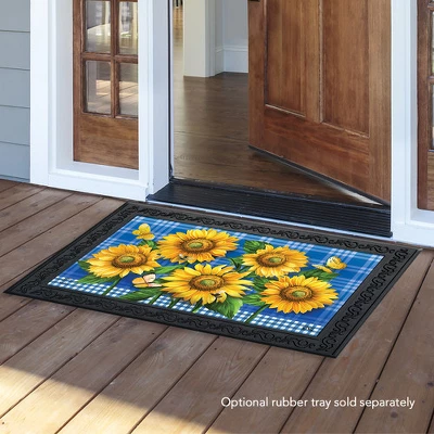 Briarwood Lane Blue Sunflowers Summer Doormat Plaid Floral Indoor Outdoor 30″ X 18″