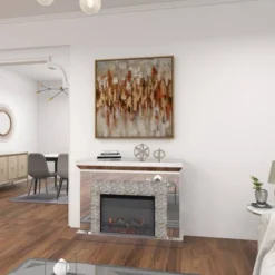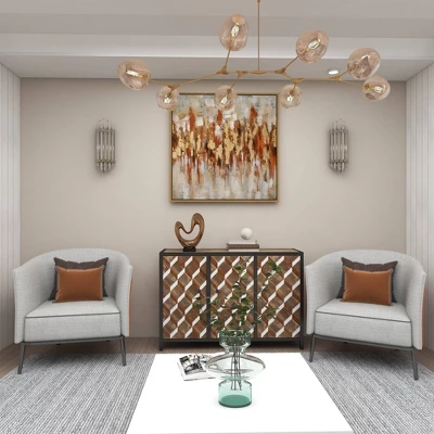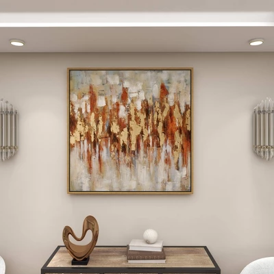 - •This abstract wall decor highlights a play of gold, red, brown, white, and gray