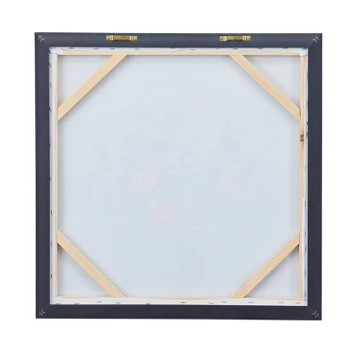 - •This square-shaped canvas wall art showcases an inner metal and outer wood frame design and features a glass vase painting with a captivating floral arrangement