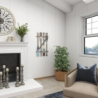 Coastal Wood Paddle Wall Decor With Arrow And Stripe Patterns – Olivia & May