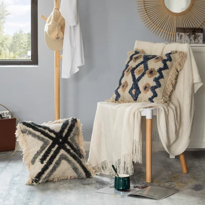 Embrace home decor style with the Deerlux Tufted Cotton Pillow Cover. Handmade by skilled artisans in India, size may slightly vary. Its 100% cotton material provides a natural rustic touch and authentic Bohemian flavor. Wash on gentle cycle, cold water and hang to dry. It features embossed zig zag design and fringed edges making it a perfect home decor accessory for living room sofas, accent chairs, or for dressing up a bed.