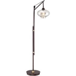 Add character and old-time charm to your living space with this industrial floor lamp with a USB dimmer. From the Franklin Iron Works brand, the design is crafted from metal and comes in a rich bronze finish with antique brass accents. Cognac glass surrounds a nostalgic Edison bulb – the final vintage-style touch to this attractive lamp. The tabletop dimmer works with dimmable CFL and dimmable LED bulbs, as well as halogen and incandescent bulbs, and it also comes with a built-in USB port, allowing you to easily charge phones and other devices.