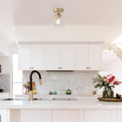 - GRANDMILLENNIAL: the matte brass color and shapely clear glass shade of the Harrow Semi-Flush Mount come together to create a feeling of nostalgia that sits in the pocket of grandmillennial design