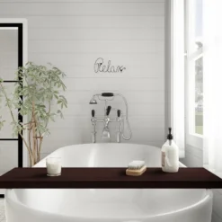 - PRODUCT DETAILS – Materials: Veneer Wood, Iron, and Linen. Dimensions: (L) 17.25″ x (W) 17.25″ x (H) 58″. Side Table: (L) 17.25″ x (W) 17.25 x (H) 25.5″. Shade: (L) 16″ x (W) 16″ x (H) 9″. Cord: 9′. UL Listed. Color: Brown, Black, and Off-White.