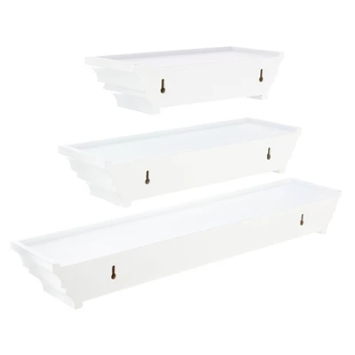 - SET OF 3 FLOATING WALL SHELVES – Display decorative items, prized possessions and keepsakes on functional, classic shelves. Elevate your décor and fill spaces above a desk, fireplace, entryway, vanity, between windows and more.