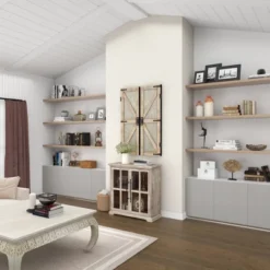 - •Iron and wood wall decor set featuring rectangular barn doors with corrugated patterns