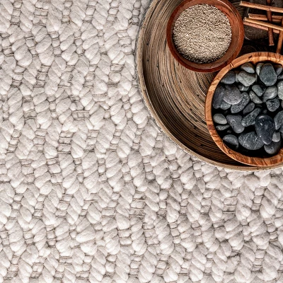 Create the cozy space youve always wanted with this wool area rug. Made from a blend of wool and cotton fibers, this floor covering will surely make a statement in any room its placed in. The handmade textured rug features a beautifully detailed chevron pattern and blends seamlessly with any décor from modern to bohemian. Enjoy every part of your home with our pet-friendly and easy to care for area rugs.