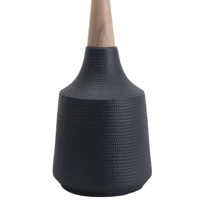 Let your room shine with the addition of this lavish 28-inch abstract table lamp. It has a Linen Drum shade that delivers bright ambient lighting. Adds a vibrant flair to any room with its black ceramic & wood finish. It has a 15-inch wide, ivory linen, drum lampshade that delivers soft lighting.