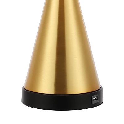 - Includes a linen-look hardback empirical shade and USB charging port for mobile devices
