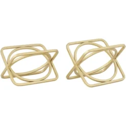 A blend of geometric silhouettes creates sheer artistry with an intriguing twist as this set of two metal decorative ornaments sit side by side to reflect good taste. Hand-made by Studio 55D, these gold finish metal figures from the Suffolk collection reflect elegance and contemporary attitude all in one. Two separate widths expand on a fresh visual effect.