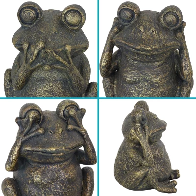 Add charming character to the patio, garden, or any other indoor living space with this trio of 3 friendly frogs. The 3 wise frogs are posed in classic hear no evil, see no evil, and speak no evil stances and are wonderful accents for to the home or garden. The polystone construction gives these adorable frog sculptures a stone-like texture that is easy to maintain in a variety of indoor or outdoor settings. Polystone is a compound made up largely of polyurethane resin mixed with powdered stone additives that give it added weight and a porcelain or stone-like feel. Polystone is still lightweight enough to maneuver easily while remaining durable against the outdoor elements for long-lasting use and style. The statues are painted with an antique finish for fresh details and a classic, ancient-like design. These 3 funny, friendly, and small accents will uplift any space with eye-catching, casual style and is sure to complement any home aesthetic.
