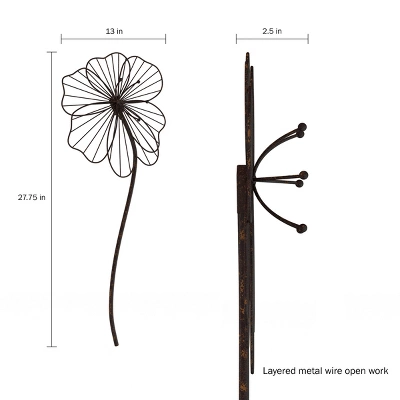 Add modern flair to your home with this Wire Flower Wall Art by Lavish Home. This wall decor is crafted from iron and features a distressed brown finish to create a modern floral sculpture that adds visual dimension and depth to a space with its layered wire design and three-dimensional stamens. The convenient keyhole hanger and included hardware ensure that this wall art decor is easy to mount, letting you add instant style to your living room, bathroom, kitchen, and various other areas. Display multiple metal wall art flowers together as a statement piece or use a single flower for an easy way to enhance your home decor, wall collages, or an art canvas.